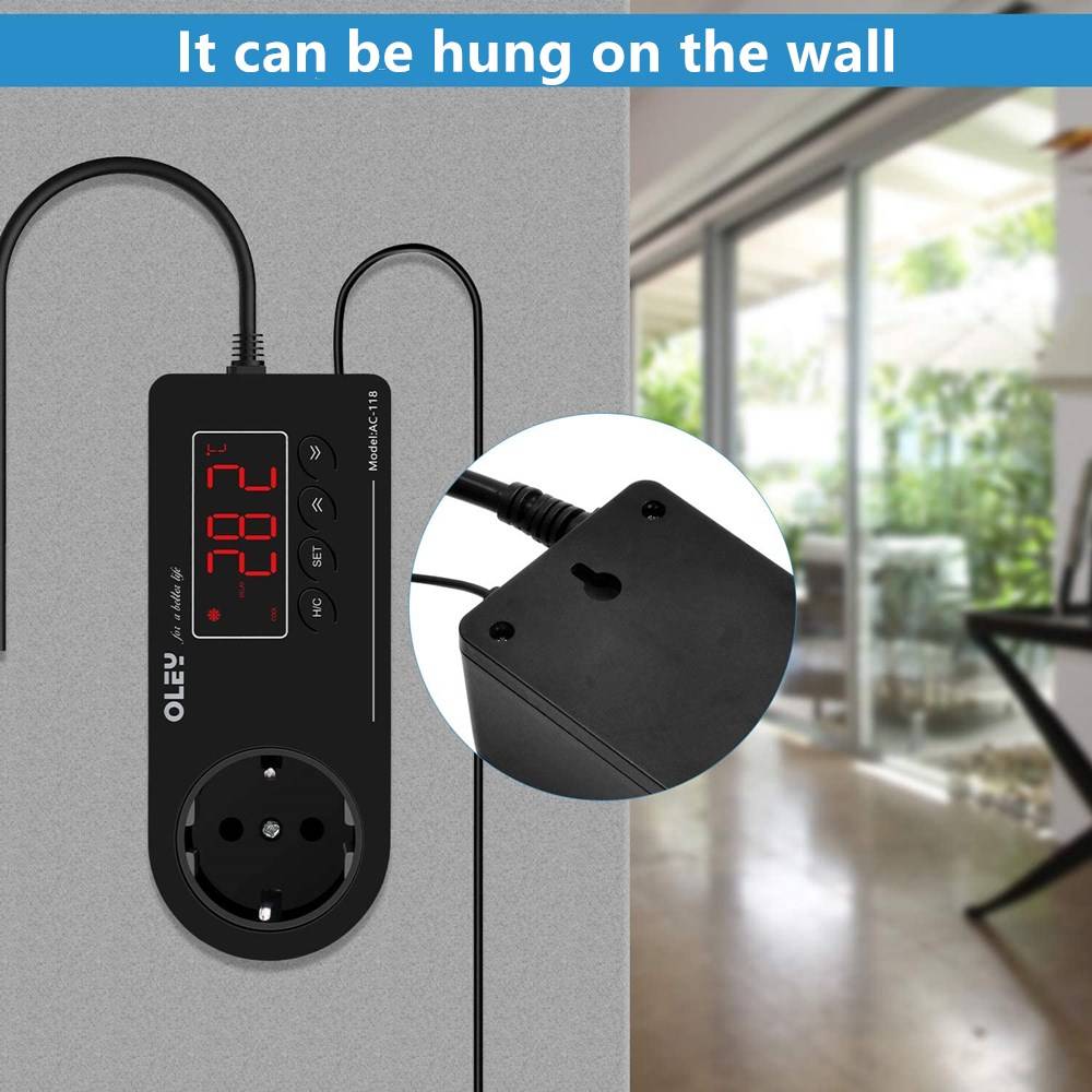 Диапазон контроля температуры: 16 ° ~ 40 ° CДиапазон измерения температуры: -40 ° ~ 100 ° CДиапазон задержки компрессора: 0 ~ 150 секундРазрешение: 0,1 ° C; Точность: ± 1,0 ° CВходное напряжение: 220В переменного тока ± 15%Контактная мощность реле: 230 В переменного тока, 10 А макс (резистивная нагрузка)Индуктивная нагрузка: 275 Вт/220 ВРезистивная нагрузка: 1100 Вт/220 ВТемпература окружающей среды: -10 ° ~ 60 ° CРабочая влажность: 20% ~ 85% (без конденсации) 1. Повышает уровень выживаемости растений, саженцев и черенков, обеспечивая наилучшие температурные условия для укоренения на лотке. 2. Позволяет следить за колебаниями вашего террариума с течением времени. 3. Поддерживать температуру, чтобы ваша рыба была в комфортной среде. 4. Идеально подходит для контроля камеры брожения с точной точностью. 5. С красными цифрами информация может быть видна даже в темноте. 6. Зонд может быть расположен как во влажной, так и в сухой среде. 7. Термостат может быть установлен на стене.