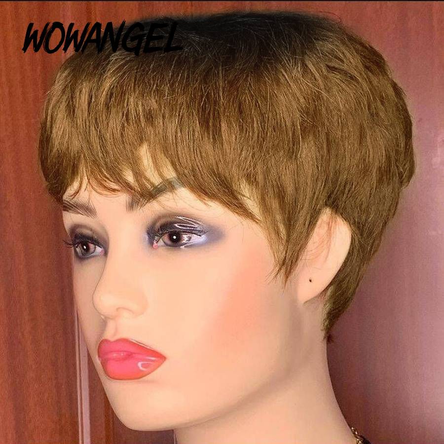 Омбре медовый блонд бордовый 99J Пикси человеческие волосы парики вырезать прямые бразильские волосы для черных женщин машина сделано дешево Glueless