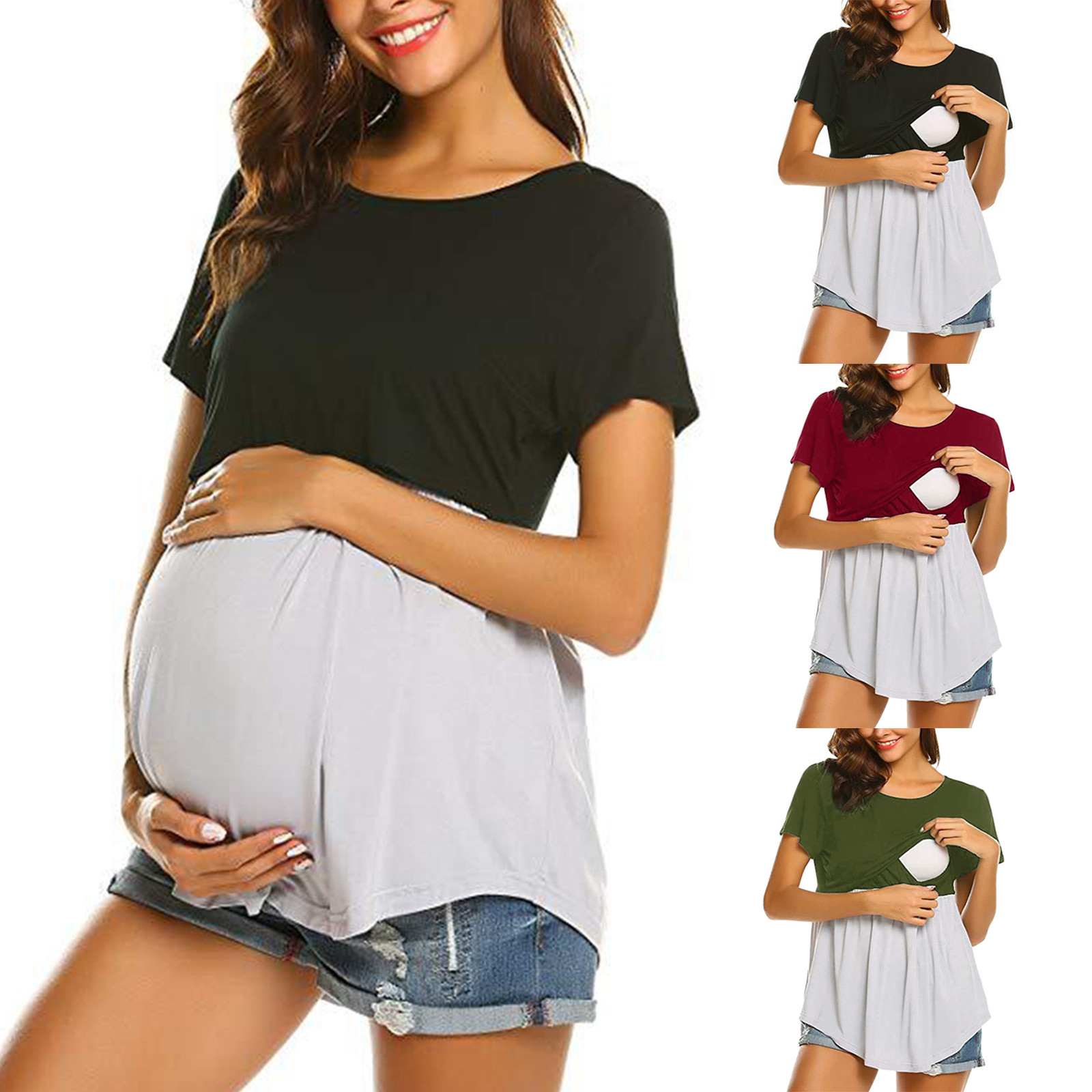Повседневная Футболка для беременных с круглым вырезом и коротким рукавом