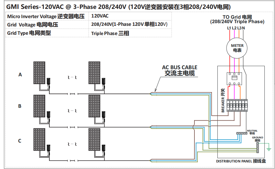• Это оборудование находится на сетке микроинвертора, чтобы он работал должным образом, он должен быть подключен к электросети правильно, и электросеть работает должным образом, когда электросеть перестала работать, он также перестанет генерировать.