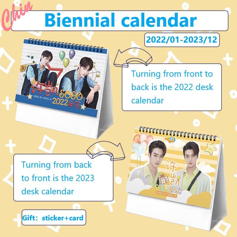 Примечание: Поворот спереди и сзади-это календарь на 2022 столе. Поворот от спины к передней стороне-это календарь на 2023.