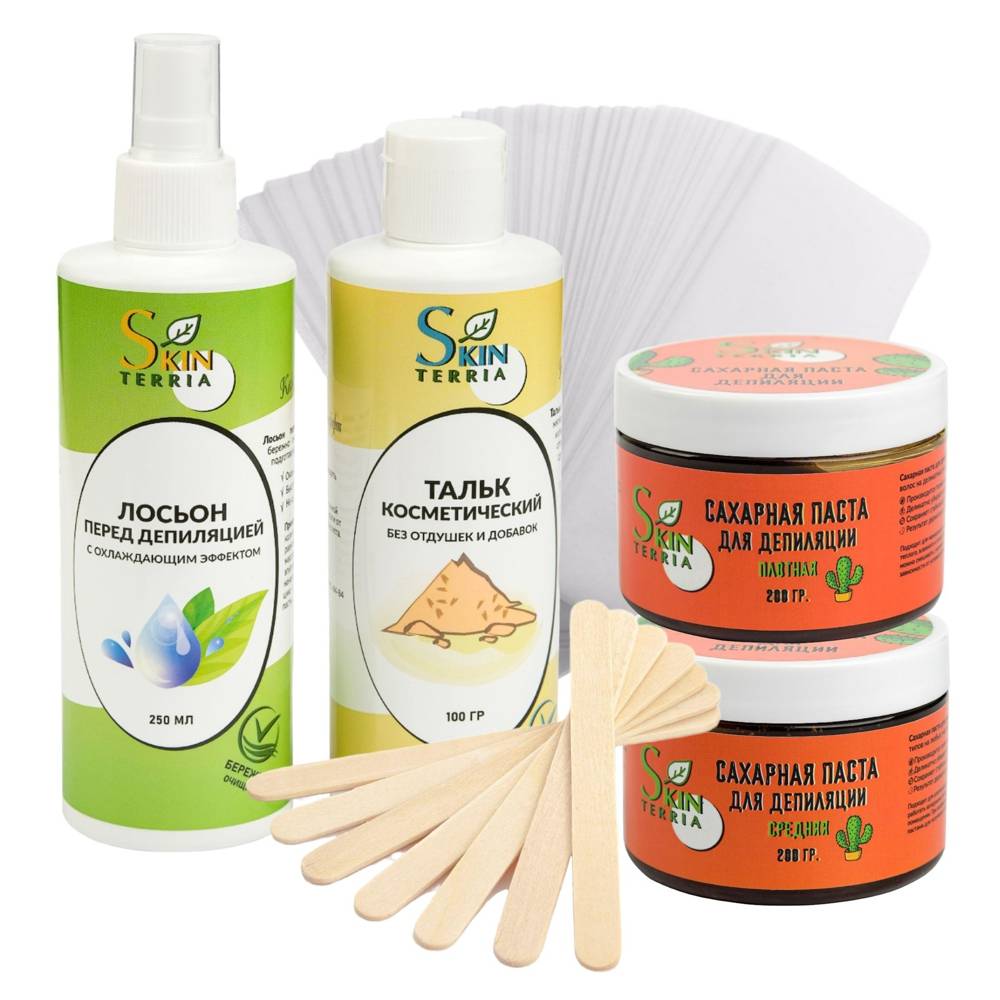 Бережное очищение и защита кожи Набор для восковой депиляции и шугаринга скинтеррии поможет вам провести салонную процедуру в домашних условиях быстро и эффективно. Лосьон перед депиляцией skinterria Мягко очищает и смягчает кожу, подготавливая ее к процедуре депиляции.
