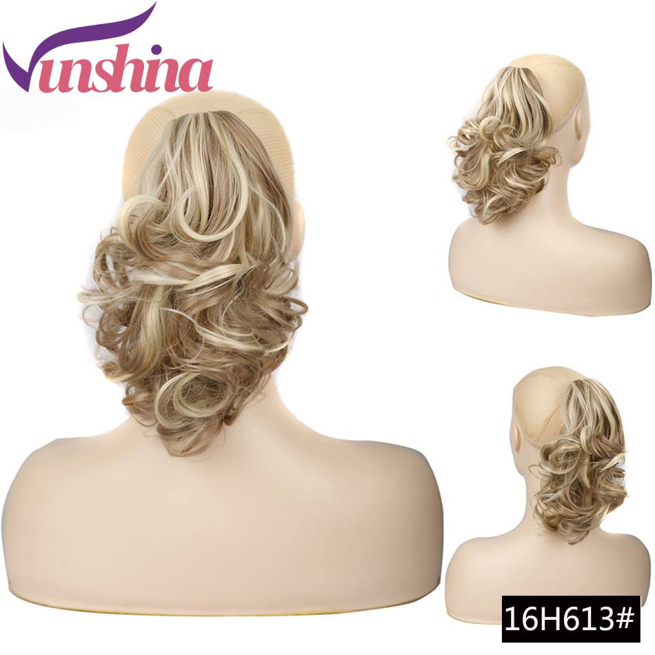 Vunshina Выделите светлые синтетические хвостики для прически короткие кудрявые коготки на заколках для наращивания натуральные поддельные волосы толстый пони хвост шиньон