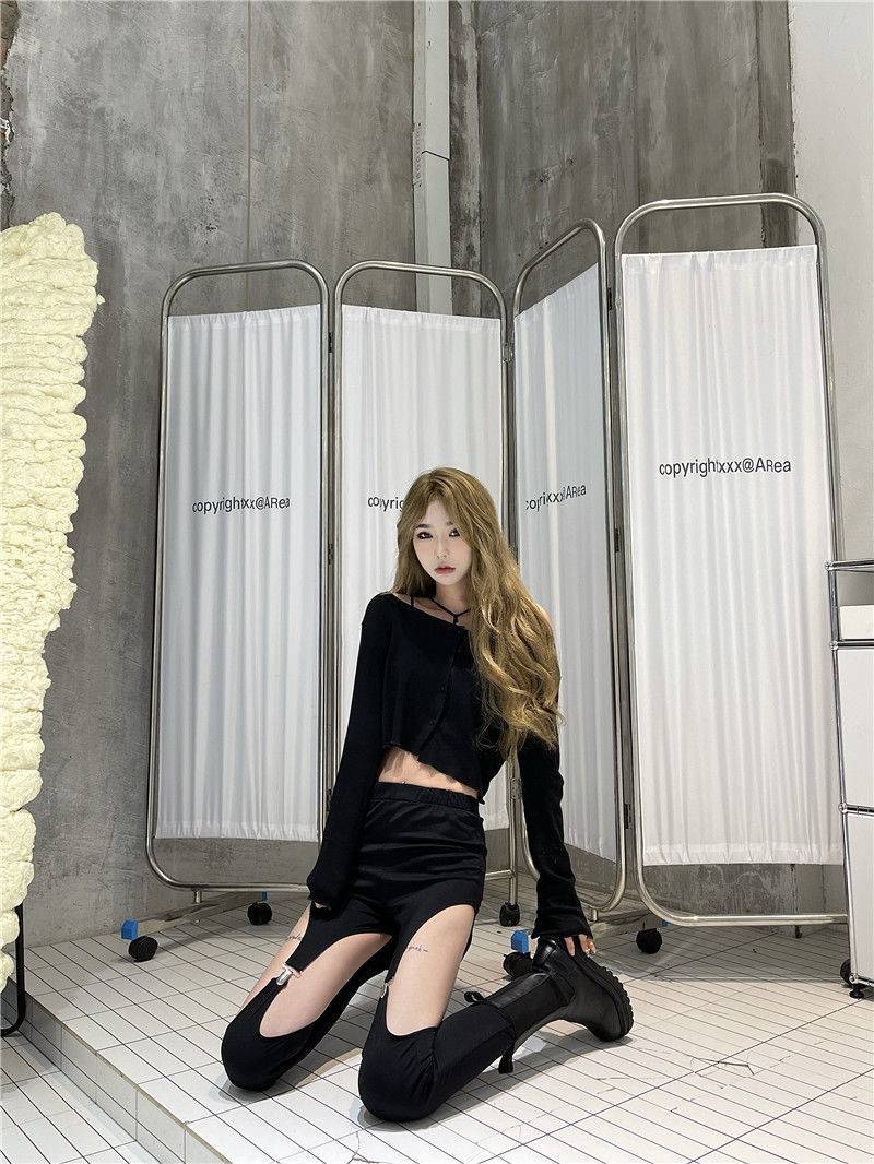 Черные готические женские уличные спортивные длинные брюки, летние женские большие открытые съемные шорты с отверстиями, штаны с эластичной резинкой на талии, панковские брюки