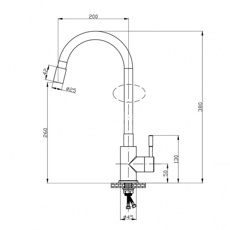 Смеситель для кухни боковой однорукояточный, картридж 40мм. Цилиндрическая форма рукоятки. Материал корпуса - латунь. Гибкий излив 50см в силиконовой оболочке. Способ крепления к раковине - гайка. Покрытие корпуса - хром.