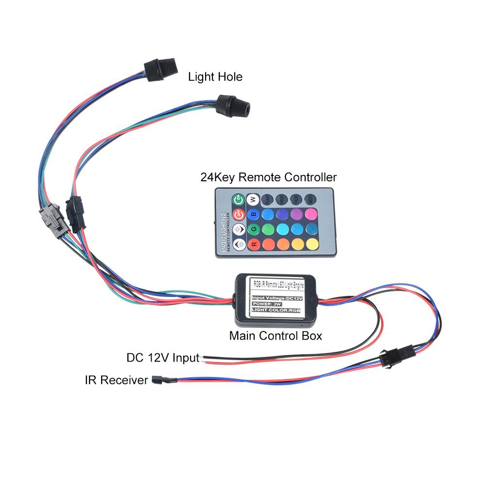 Режим дистанционного управления: одноцветный (красный, зеленый, синий, желтый, белый, голубой, розовый и т. д.) и RGB светильник (вспышка,
