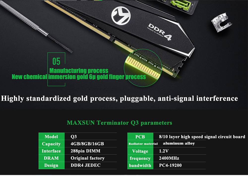 Параметры: Терминатор DDR4 памяти (с теплоотводом) Главный меч радиатора Частота 2400 МГц/2666 МГц/3000 МГц 4 ГБ/8 ГБ/16 ГБ Пожизненная гарантия Основные параметры: Оперативная память Торговая марка: MAXSUN Модель: Terminator DDR4 Q0/Q3 Емкость: 4 ГБ/8 ГБ/16 ГБ Частота памяти: DDR4-2400MHz/2666 МГц/3000 МГц Сроки: DDR4 4G/8G/16G 2400 МГц (17-17-17-39), DDR4 8 Гб 2666 МГц (19-19-19-43), DDR4 8 Гб 3000 МГц (16-18-18-38). Рабочее напряжение: 1,2 в Тип интерфейса: 288pin DDR4 DIMM Гарантия: пожизненная Гарантия Особенности: RGB эффект освещения Материал радиатора: алюминиевый сплав PCB: 8/10 layar высокоскоростная плата сигнала Размер продукта: 142 мм * 49,7 мм * 8,5 мм Размер упаковки: 177 мм * 77 мм * 12 мм Рабочая температура: 0 градусов ~ 70 градусов