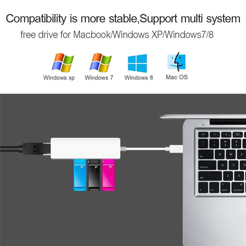 Посылка включает в себя: 1*3 порта usb-хаб с драйвером USB LAN