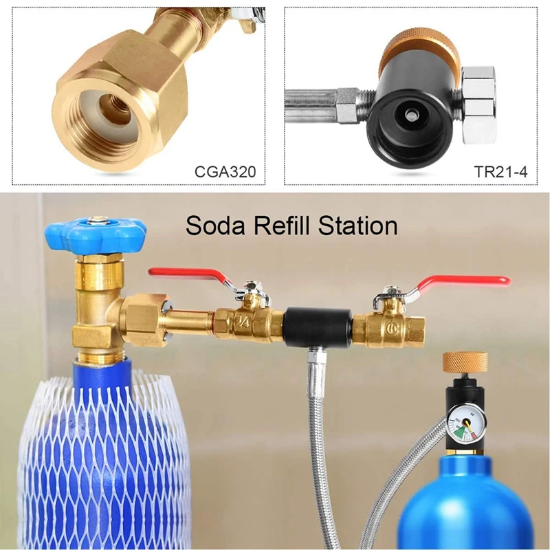 Адаптер для заправки соды Kit-CO2 адаптер для заправки цилиндра комплект соединителей для заправки станции, набор для наполнения соды для резервуара