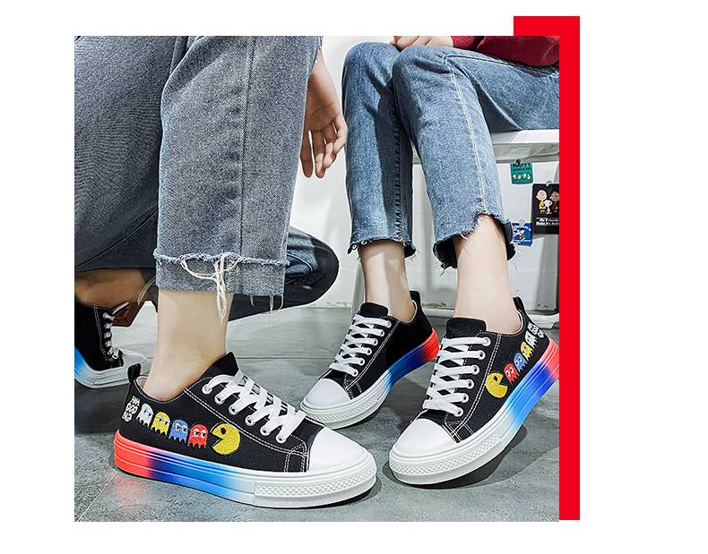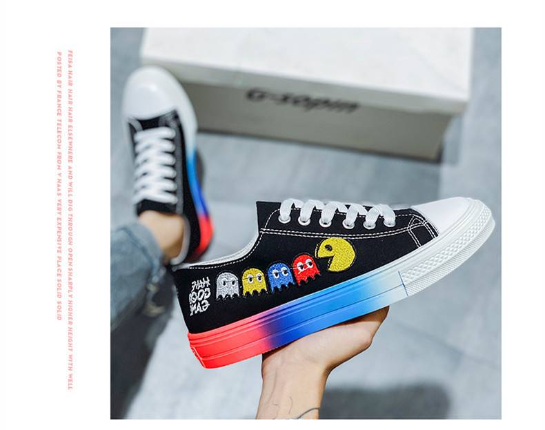 Модные мужские парусиновые кроссовки черного цвета с вышивкой из мультфильма; Женская парусиновая обувь на плоской подошве; Высокие спортивные кроссовки; Мужские эспадрильи