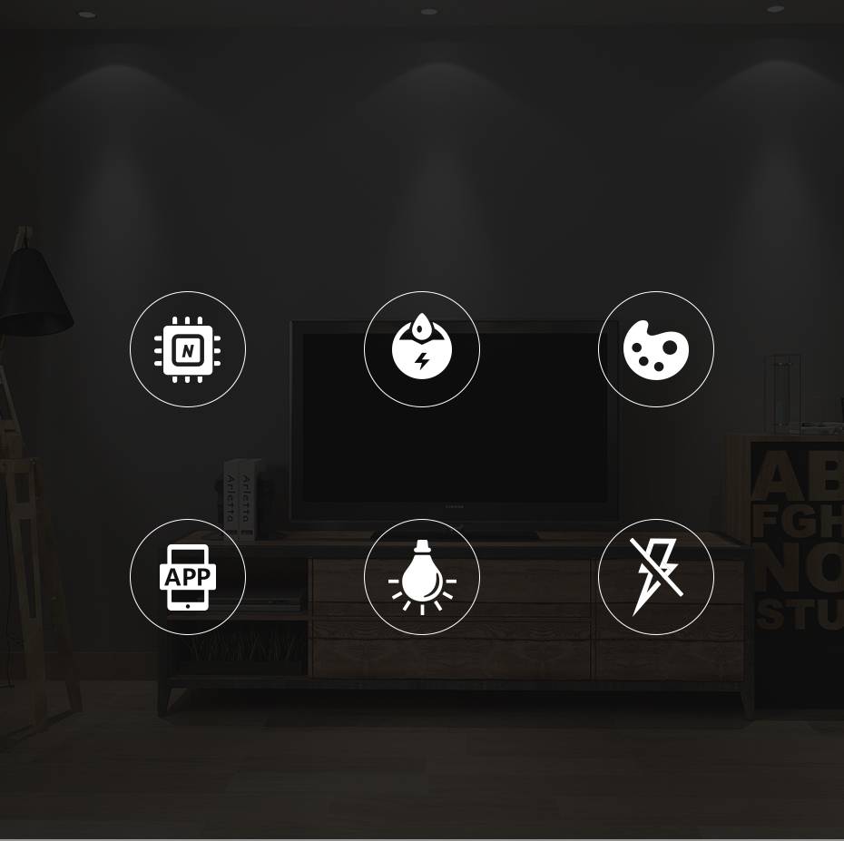 Различные функцииНаслаждайтесь умной и удобной жизньюЧип высокой яркостиЭнергосберегающийВысокая цветопередачаУправление через приложениеВысокая светопроницаемостьБез стробоскопа |