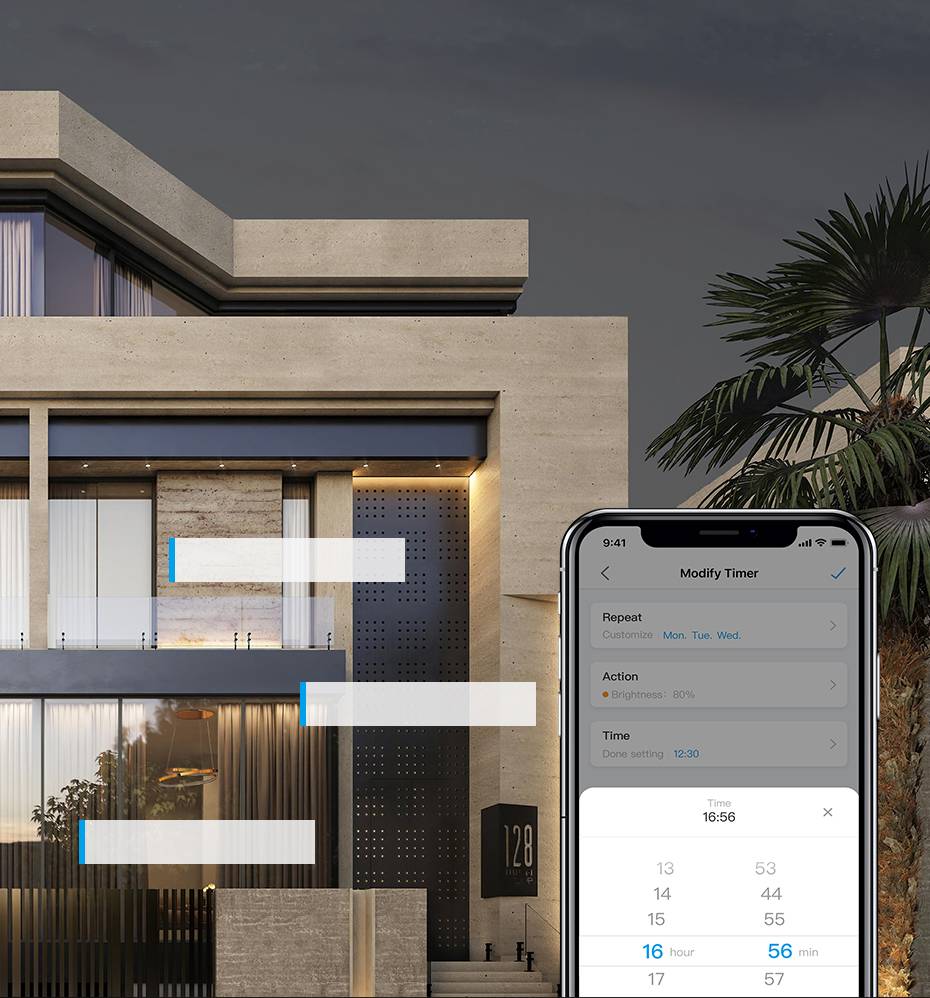Функция таймераАвтоматическое включение/выключение с функцией таймераУправляйте через смартфон (Android и IOS), вы можете управлять светом в любом месте.08:30/включение12:00/выключатель18:00/включение |