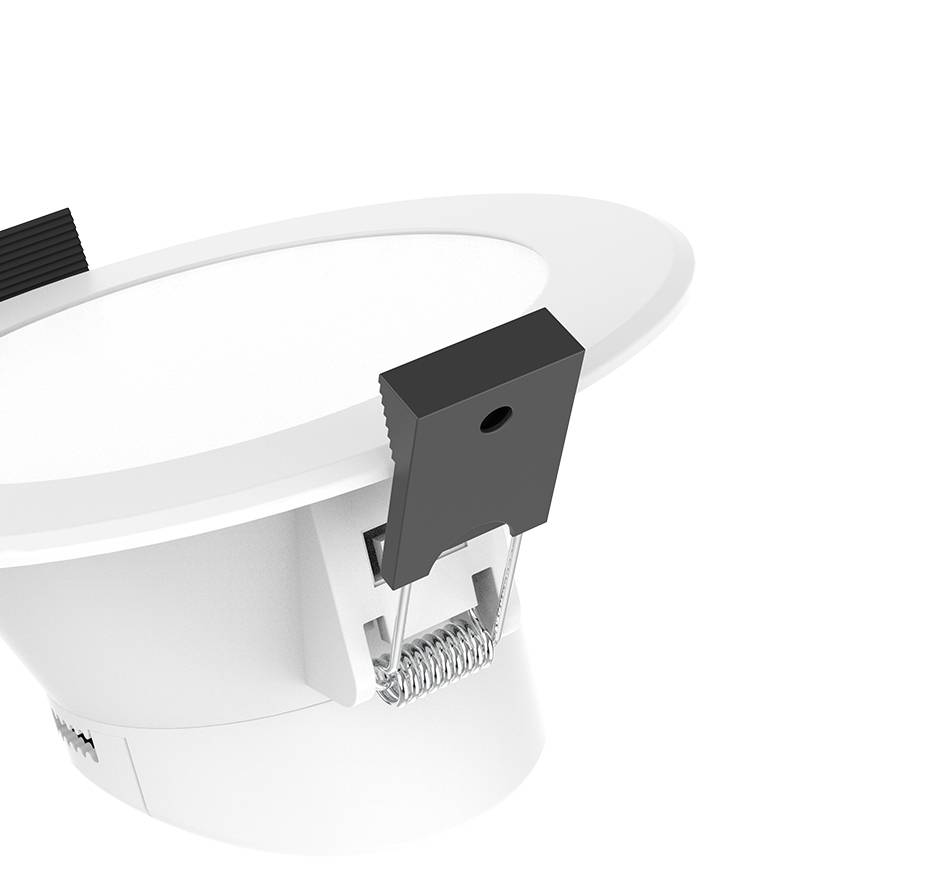Установите в потолок: Поместите Пружинные пряжки с обеих сторон лампы вверх и вертикально в отверстие, как показано на рисунке.Отрегулируйте лицевое кольцо: Отрегулируйте лицевое кольцо, чтобы лампа равномерно прилегала, и завершите установку. |