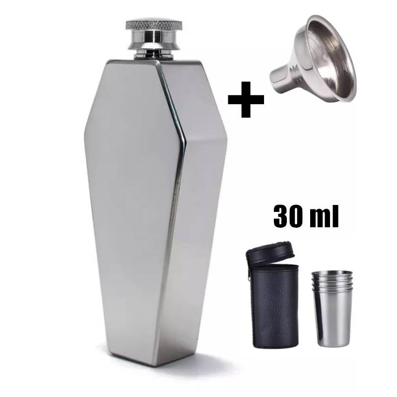 Портативный плоская фляжка 3,5 oz духов чашки + Воронка Нержавеющая сталь 4 шт. 30 мл выстрел Стекло, комплект с изображением форма гроба кувшин Для мужчин, подарок