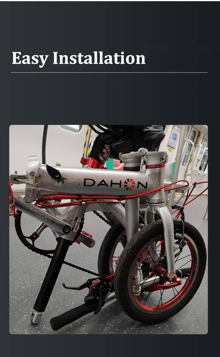 2. Легкое колесо складного велосипеда устанавливается в нижней части подседельной трубы, что поможет повысить эффективность использования. После складывания он может легко войти в метро/автобус