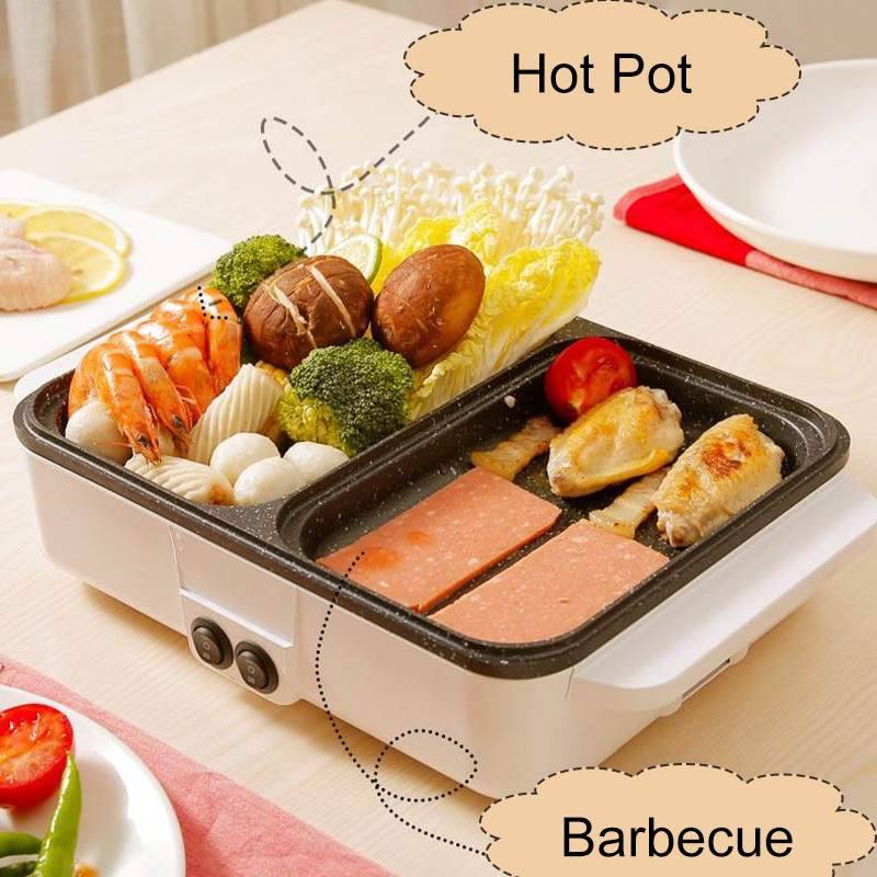 110 В/220 В 2 в 1 электрическая плита с горячим горшком, гриль для барбекю, мульти плита, электрический гриль для барбекю, антипригарная плита, сковорода для барбекю, общий горячий горшок