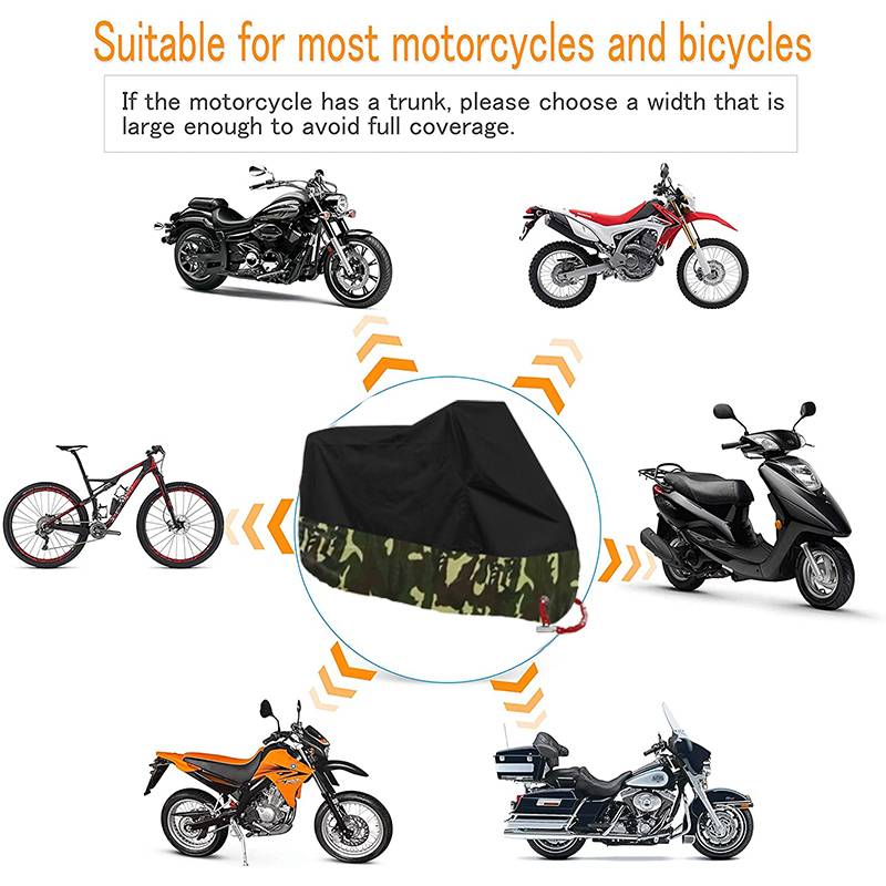 【Защита от погодных условийНаш водонепроницаемый чехол для мотоцикла обеспечит эффективную защиту от любых погодных условий, независимо от того, идет ли дождь, снег или это очень солнечный день. Благодаря своей конструкции, он предотвратит просачивание воды и защитит ваш мотоцикл от ультрафиолетовых лучей солнца, от ветра и пыли