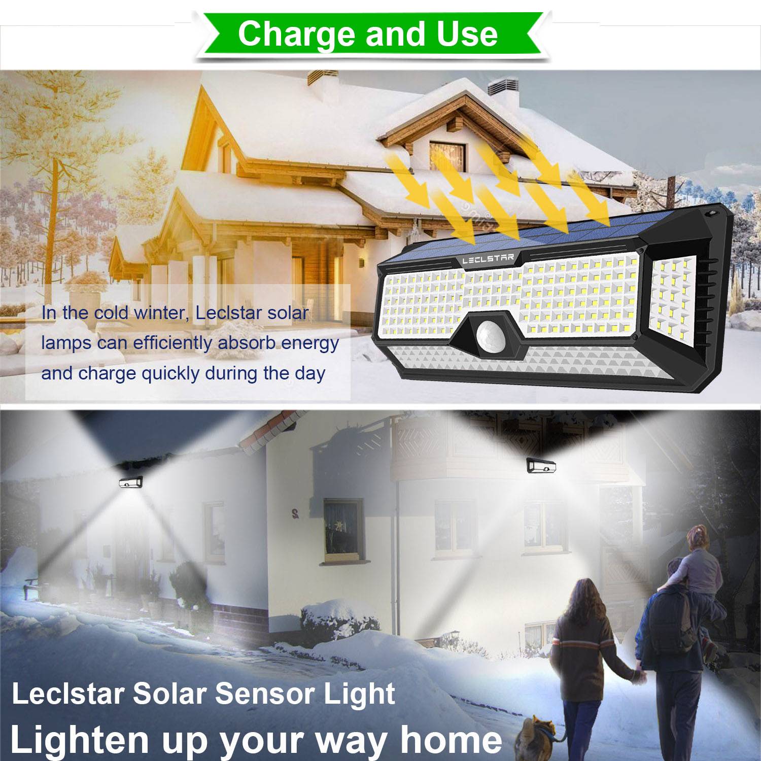 Лампа на солнечной батарее с датчиком движения на открытом воздухе имеет 3 различных интеллектуальных режима освещения с широким углом освещения 270 ° для удовлетворения ваших различных потребностей: ❶: постоянное освещение ❷. : Сильный светильник с датчиком-когда люди проходят через зону датчика, сильный светильник работает в течение 20 секунд. Когда люди уходят, светильник меняется на тусклый. ❸ : Режим датчика движения-разница во 2 режимах заключается в том, что светильник выключается после того, как человек уйдет. Больший угол означает гораздо более яркий светильник.