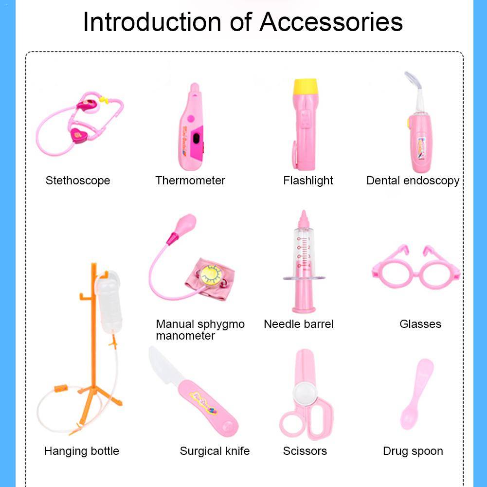 1. Посылка включает в себя: посылка включает в себя 15 различных инструментов и комплектов для ролевых игр для стоматологов, докторов и медсестер. Стетоскоп с сердцебиением, отоскоп и стоматологическое зеркало с светильник позволяют ребенку показать сцену и сделать опыт более реалистичным.Набор из 15 предметов doctor tools/1 Набор