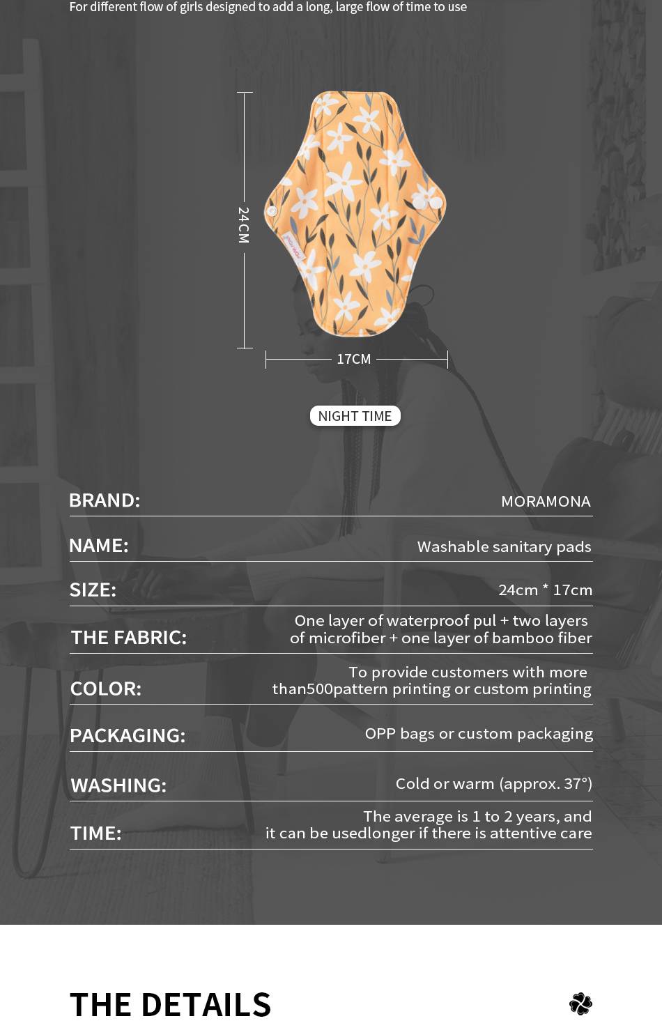 Extreme Quality Material: For efficiently leak-proof and absorb water, our sanitary pads consist of four layers of materials, super soft and quick-drying bamboo fiber, 2-layer super-absorbent microfiber, the outer waterproof material.