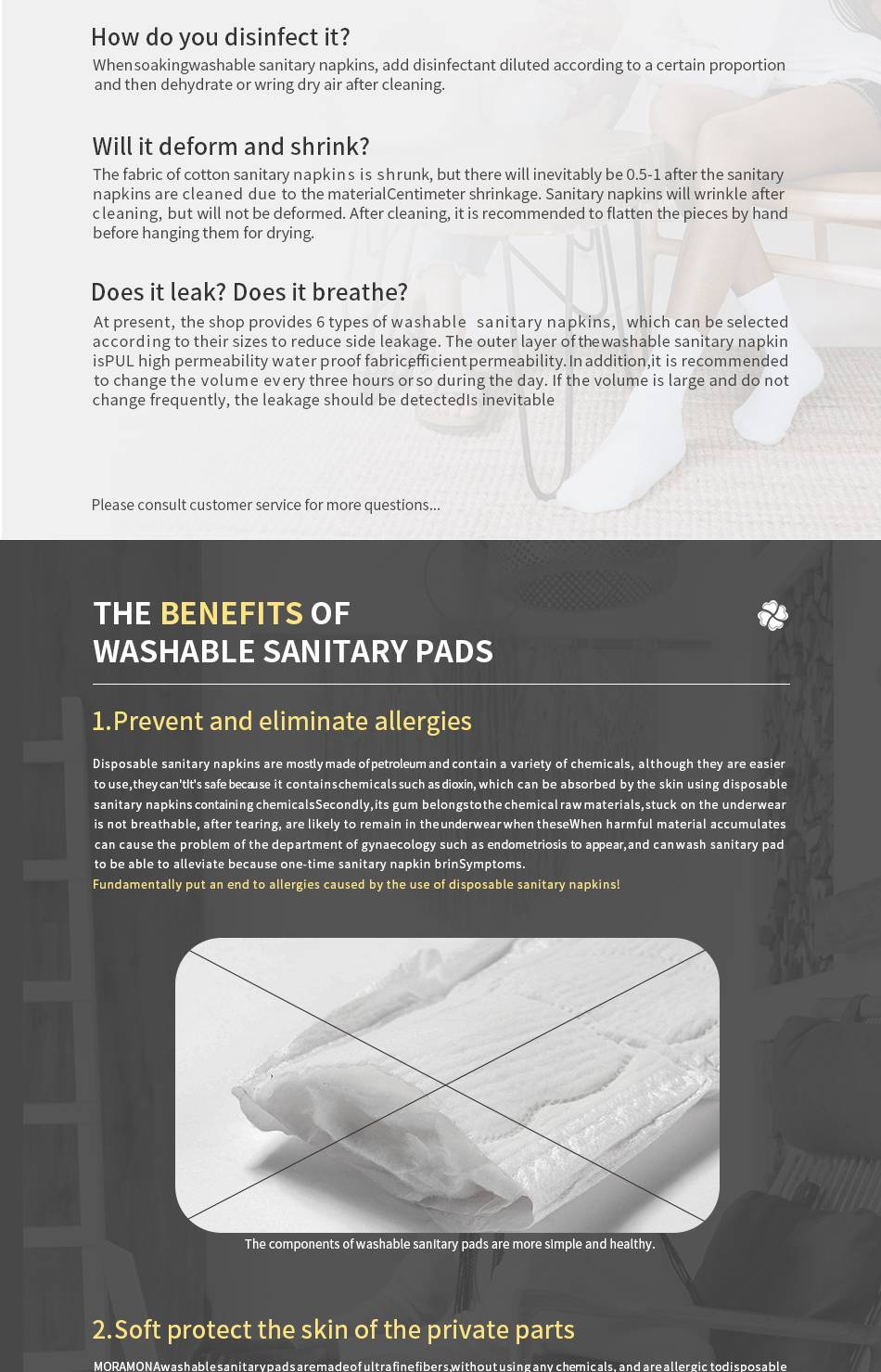 Essential Items for Women: This set saves your expenses, greatly helping cut down on the landfill waste, it is good for the environment and ourselves. It can be used whether menstruation, postpartum bleeding or incontinence.