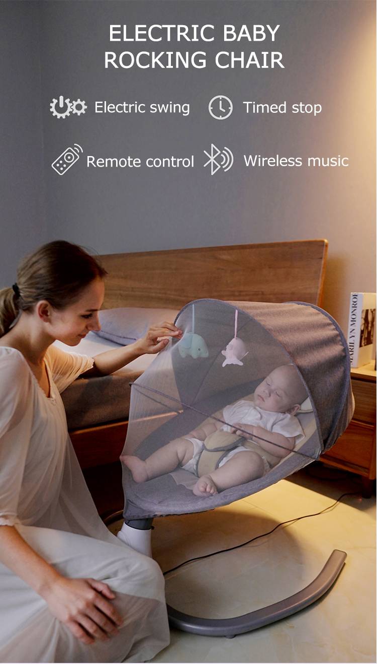 Умная электрическая детская качающаяся кровать, качалка, детская MP3 музыкальная кровать, изготовленная из АБС-пластика, окрашенная легированная стальная труба и ткань.