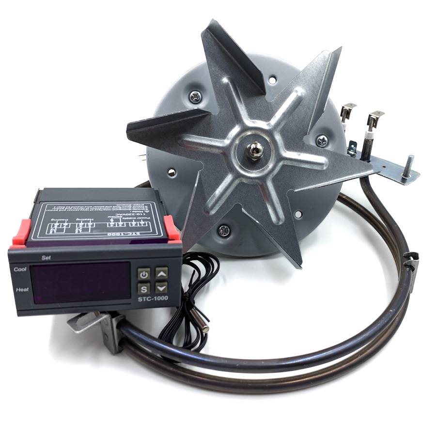 ТЭН кольцевой (круглый), мощностью 1600 Вт + Терморегулятор STC-1000+ Вентилятор конвекции в сборе. Длина штока мотора от установочной пластины до крыльчатки 22 мм. Подходит для установки через вагонку.