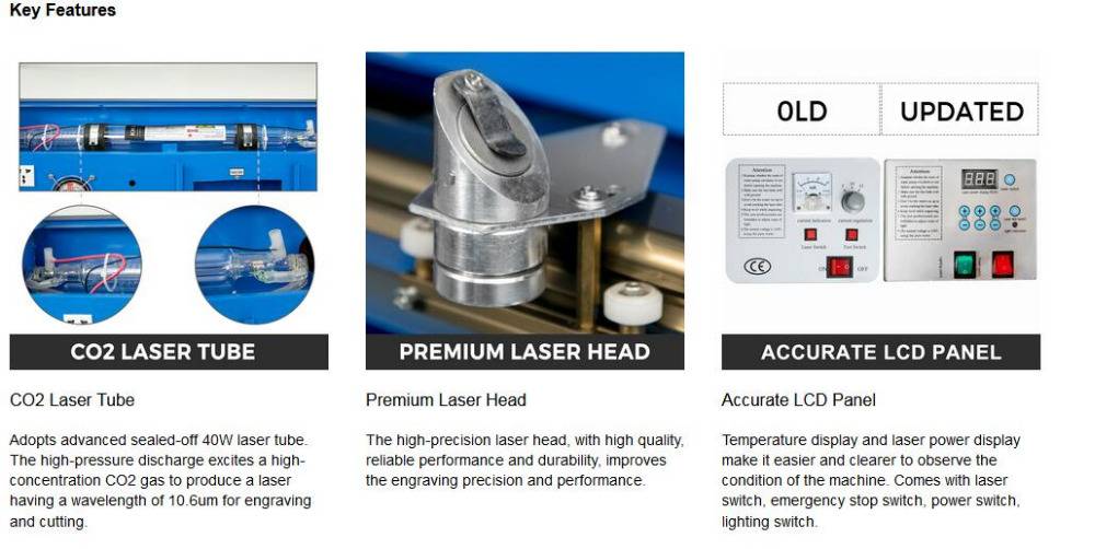 Принимает импортированный из Германии подшипник и Высокоточный шаговый ремень, который не только делает гравировку более точной, но и делает машину в срок службы дважды-три раза, чем обычный лазерный гравер CO2.