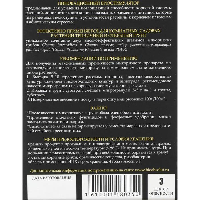 Действие этого препарата основано на образовании микоризы с корневой системой сельскохозяйственных растений, в том числе и овощных культур.