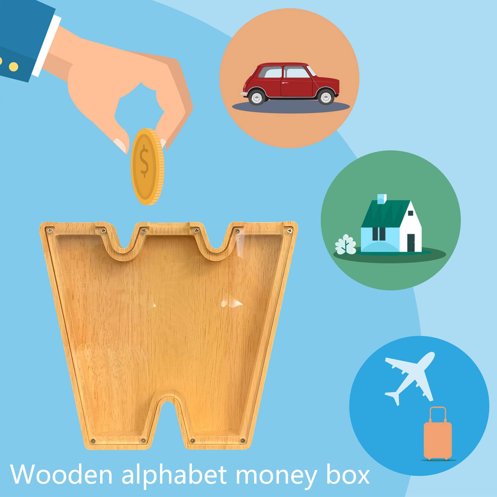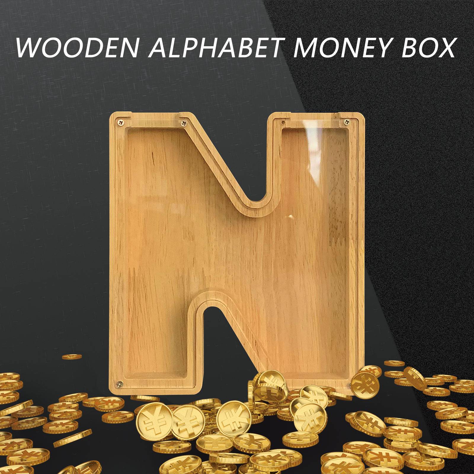 Креативная сберегающая коробка, 26 Английский алфавит деревянная коробка для хранения денег с органическим стеклом, Нетоксичная, DIY коробка для экономии денег, персонализированный копилка для экономии монет, деревянная банка для монет, банка для наконечников