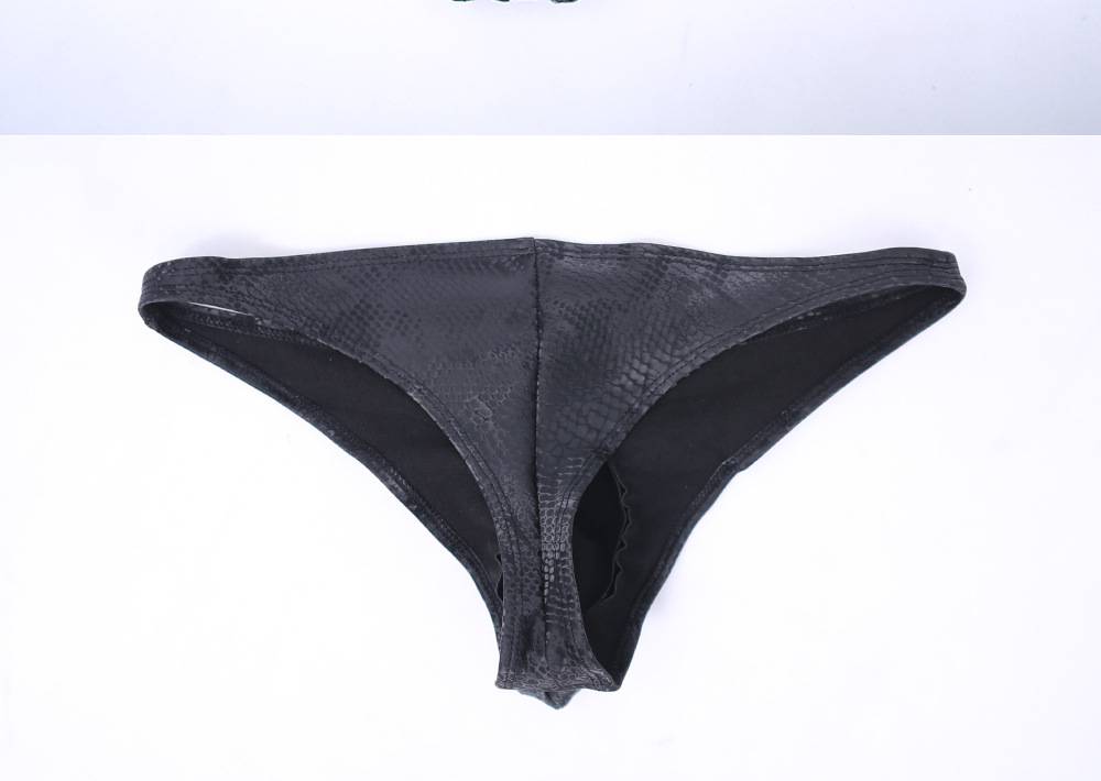 Мужские высокие эластичные стринги из искусственной кожи со змеиным узором и Т-образным ремешком, сексуальные трусы с закрытым рукавом для пениса, с низкой талией