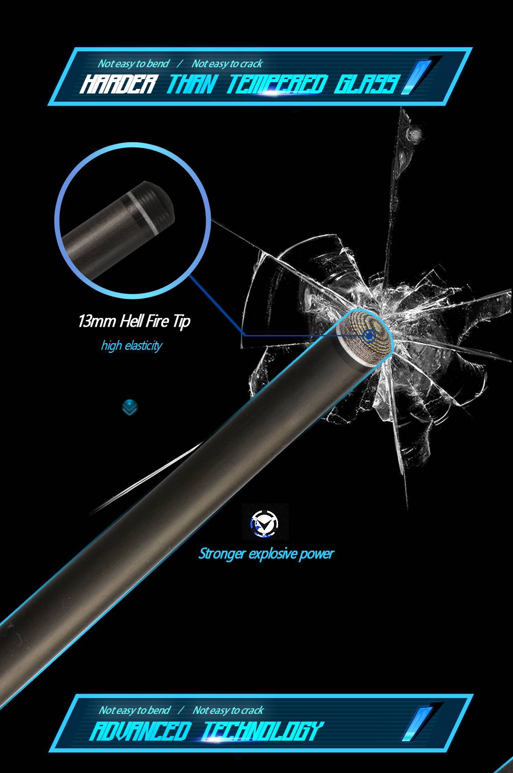 1.13.0 мм огненный наконечник 2 .. BKS стержень из углеродного волокна 3.FURY-LOC соединение 4.3D гладкая пленка/плетеная силиконовая пленка 5. Вес 17,5-18,5 oz 6. Посылка длиной 55 дюймов включает в себя: 1 * cue 1 * чехол 1 * Перчатка 1 * наконечник и так далее для подарков.