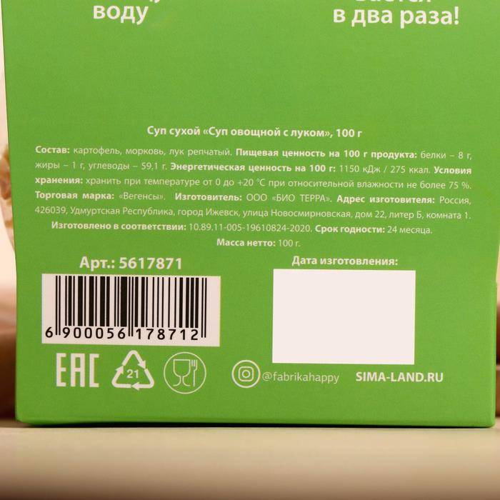 | Вид продуктов быстрого приготовления | Суп |
