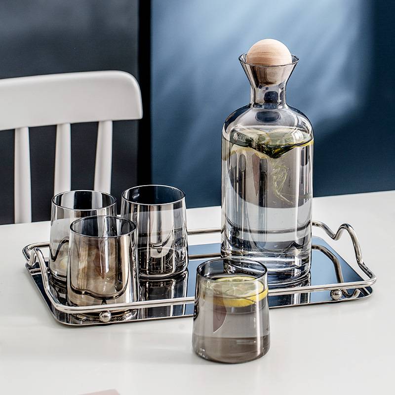 Ни один человек не может устоять перед искушением этого великолепного водного набора. Уникальный дизайн включает в себя Модные элементы. Форма корпуса графина Классическая и Бриллиантовая мода. Сотрудничество с идеальной сферической крышкой из золы служит иллюстрацией вдохновения искусства. Графин поставляется с 4 очками. Очки имеют хорошую прозрачность. Все эти элементы-это комбинированная концепция минимализма и моды.