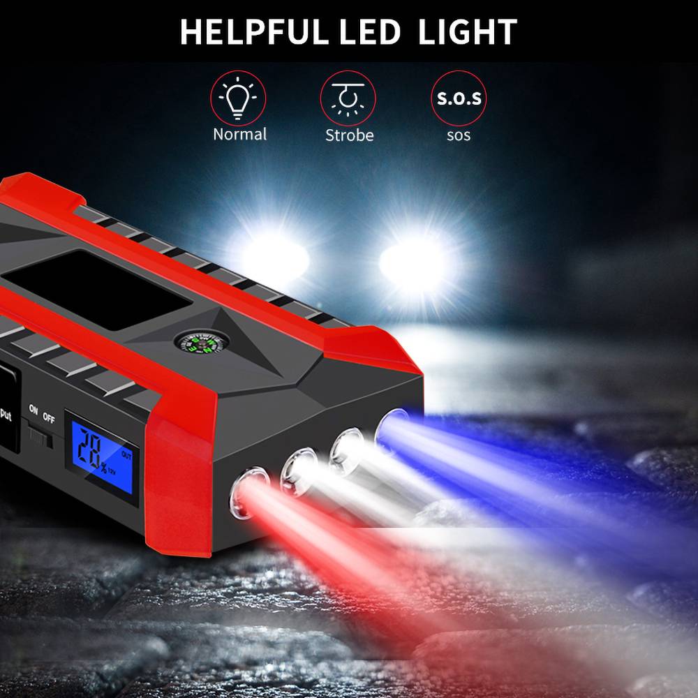 [Супер мощный и портативный] 1000A пиковый ток на выходе аварийный пусковой источник питания-этот компактный и легкий пусковой источник питания может запускать большинство транспортных средств, оснащенных бензиновыми двигателями до 6,0л или дизельными двигателями до 5,0л без каких-либо проблем.