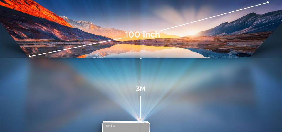 Расстояние проектора 1,35: 1 с коротким фокусным расстоянием также гарантирует, что вы сможете достичь потрясающего размера проекции 100 дюймового дисплея в небольшом и компактном пространстве. Вы можете превратить вашу гостиную, кабинет или спальню в домашний кинотеатр в любое время и в любом месте.