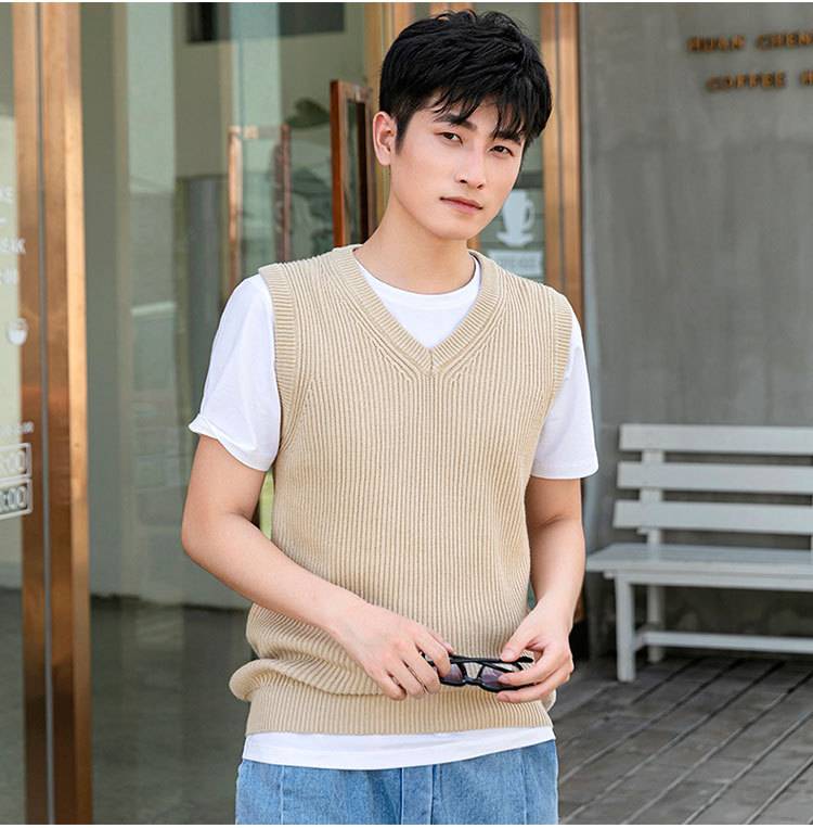 Dl0049 Мужской пуловер без рукавов свитер жилет корейский Стиль Уличная универсальная повседневная одежда сплошной цвет v-образный вырез Трикотажный жилет LFFMHMT