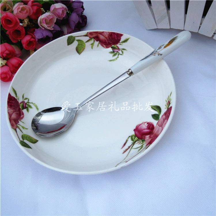 【Характеристики. Общая длина: 21 см керамическая ручка длиной 8,5 см ширина совка 4 см Какая толщина частей spoon2.5MM из нержавеющей стали отполированы тканевым колесом, чтобы сделать поверхность ложки более гладкой.