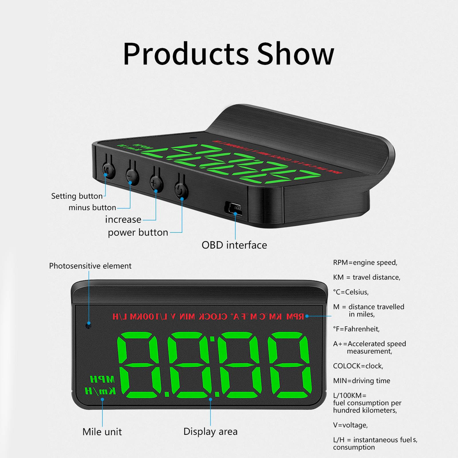 HUD короткий для дисплея головы вверх. Он отображает данные о вождении на лобовом стекле, такие как скорость, об/мин, расход топлива, температура воды, напряжение на переднем стекле автомобиля; Избегайте небезопасности водителей из-за просмотра прибора во время вождения. Водители могут мгновенно читать информацию о вождении и всегда могут поддерживать Наилучшее Состояние на пути с HUD.