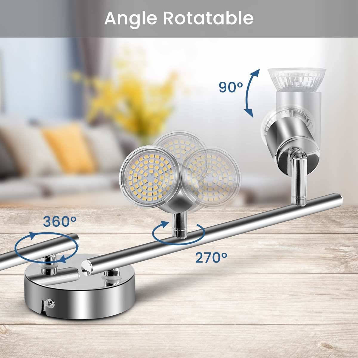 1. Этот 4 головки потолочный светильник имеет 4 GU10 вращающийся гнезд ламп, который может быть на шарнирах 360 градусов и раскачивался 90 градусов может быть перевернут вверх дном, предоставляет широкий светильник ing угол, чтобы удовлетворить вашим запросам.