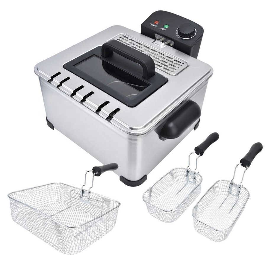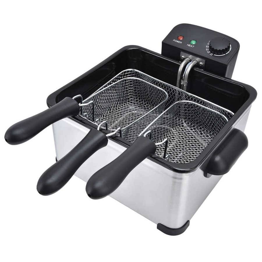 Электрическая Фритюрница 5 л фритюрница из нержавеющей стали с 5-скоростным контролем температуры, двойная корзина для кухни, европейская вилка 220 ‑ 240 В