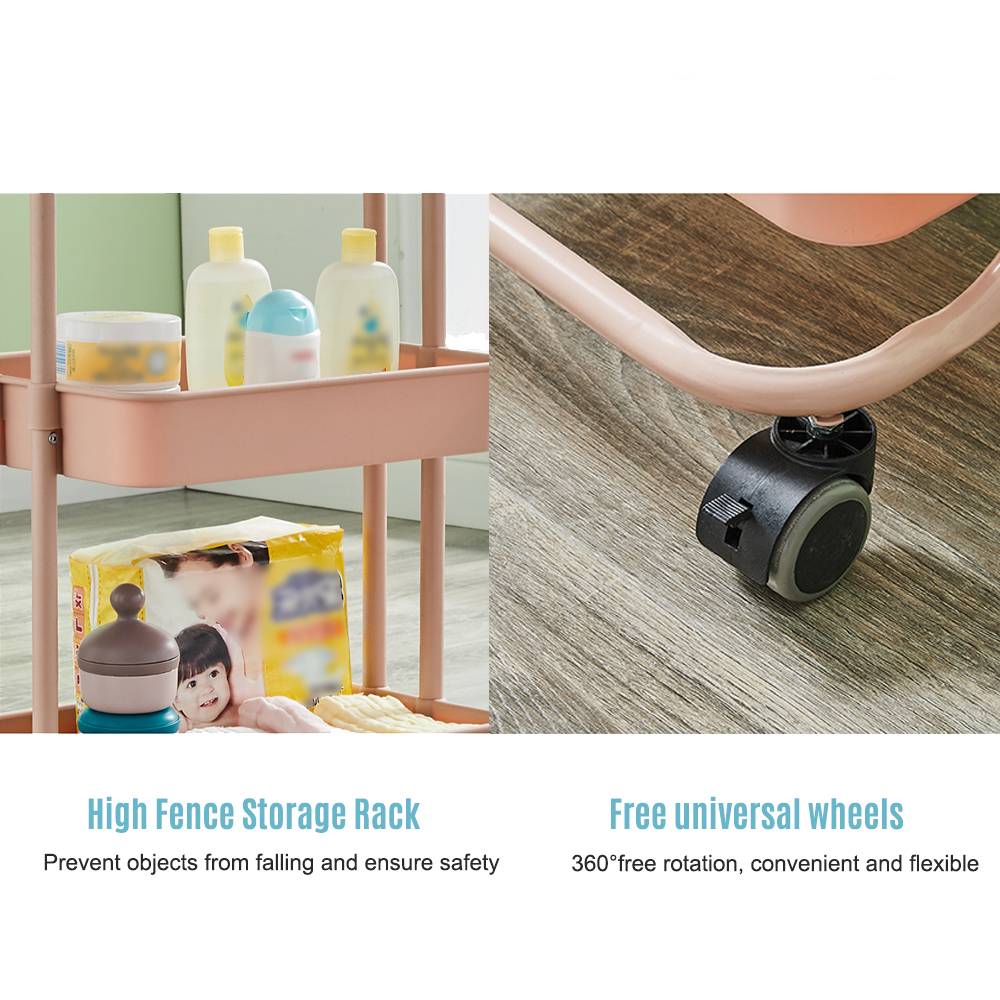 Эта тележка сделана из толстой стальной рамы и пластика. Прочная несущая способность и долговечность. С 3-х уровневая большой ящик для хранения, перфорированная нижняя часть, это позволяет для многочисленных возможности хранения. Подвижный и запираемый, с ручками, колесиками, его можно использовать на кухне, спальне и так далее.