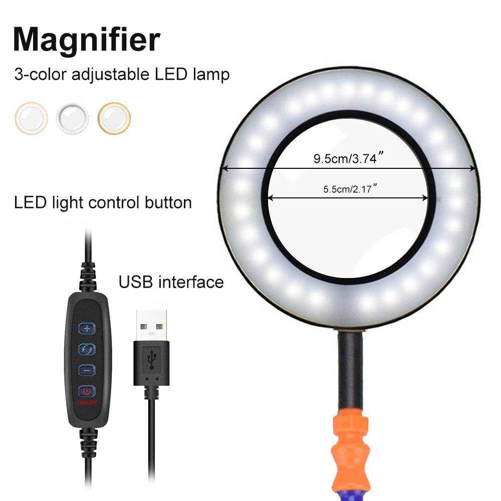 Функциональный инструмент третьей руки: Лупа лампы с 3х увеличениями, идеально подходит для любого электронного, пайки, крафта, живописи, реплики, фигурки и хобби работы, или любого проекта точности, который требует экстремальной точности.