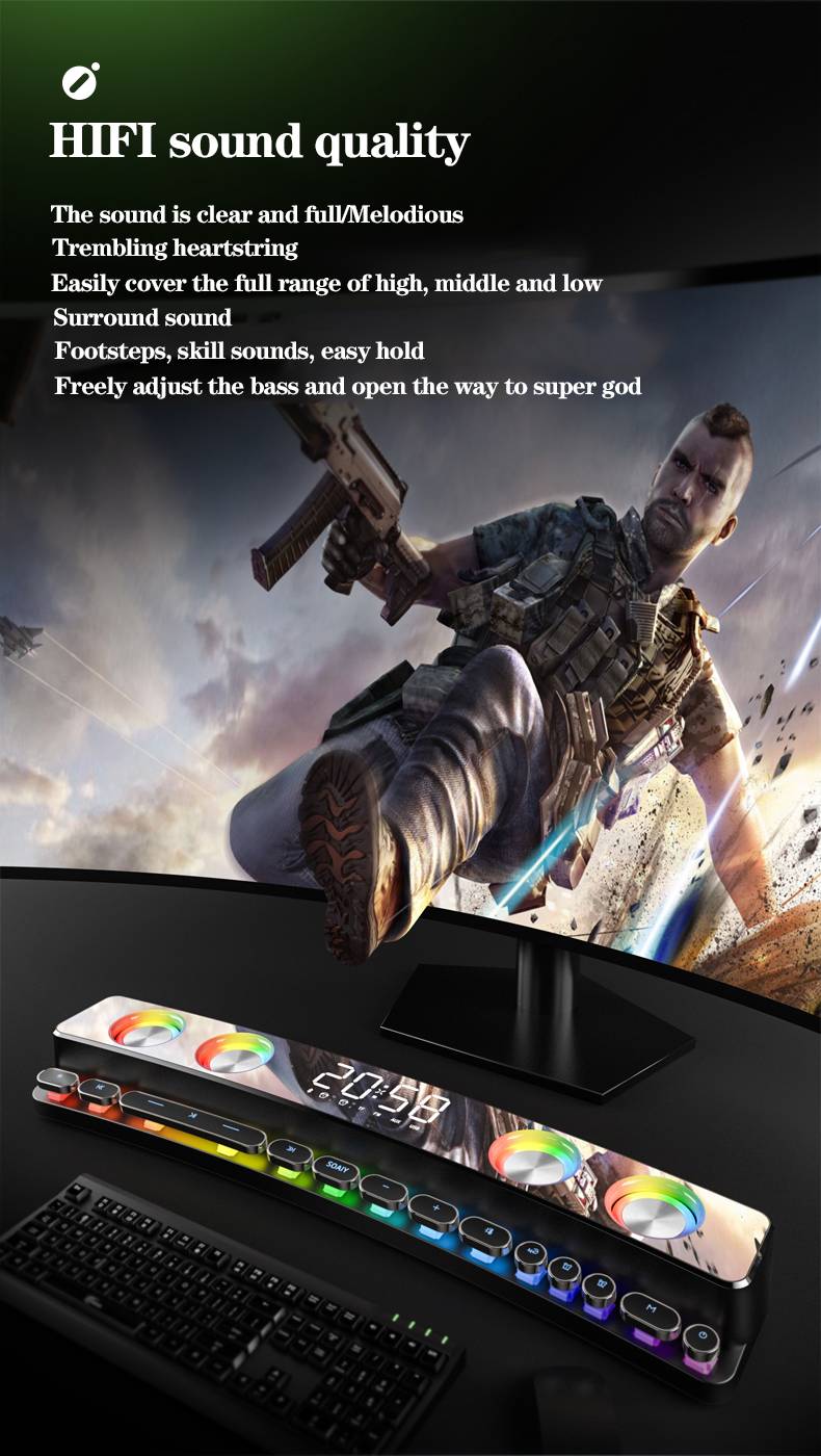 2021 горячая Распродажа, игровой сабвуфер, Bluetooth динамик, беспроводной компьютер, 3600 мАч, звуковая панель USB, 3D стерео часы, саундбар, AUX FM громкоговоритель