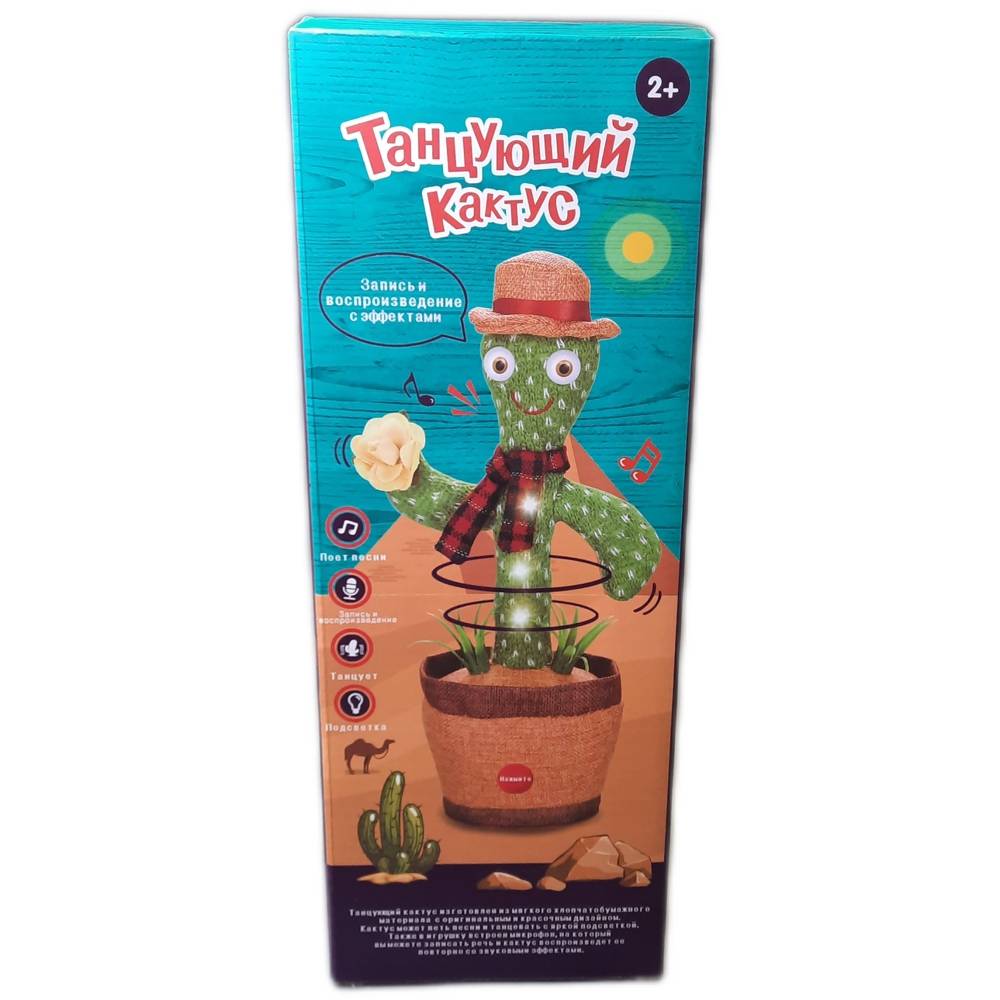 Танцующий и поющий кактус. Интерактивная музыкальная игрушка -повторюшка (кактус поющий, кактус танцующий). Превосходно выполненная игрушка из высококачественных материалов. - Симпатичная и веселая плюшевая игрушка кактус умеет танцевать, петь и подражать малышу. Функция обратной связи позволяет кактусу повторять все, что вы говорите. - Игрушка хороша для дошкольного воспитания. Он танцует в ритме, привлекая внимание малышей и вовлекая их. - Работает от пальчиковых батареек: требуется 3 батарейки типа АА (не входят в комплект) - Наша прелестная плюшевая игрушка кактус станет прекрасным подарком, который порадует людей. Это увлекательная игрушка, которая надолго сопровождает малышей. - Лучший подарок на день рождения для детей. Веселая музыка и танцы очень подходят для создания приятной атмосферы и подходят для вечеринок. Украсит даже рабочий стол и поднимет настроение. Точно не останетесь в одиночестве с самим собой в скучном кабинете .