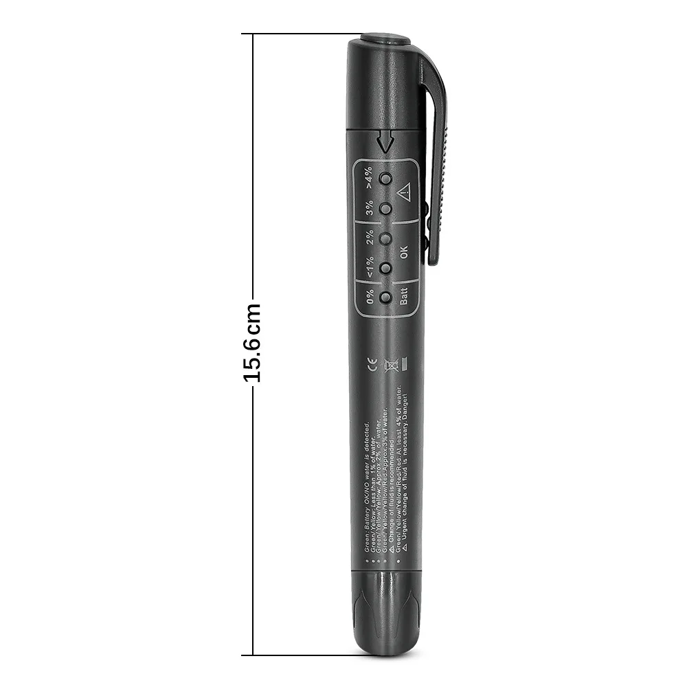 Ручка обнаружения тормозной жидкости основана на изменении проводимости для определения влажности тормозной жидкости. Он четко показывает степень влажности, содержащую светильник-излучающий диод, высокое содержание влаги приведет к более низкой температуре кипения, влияет на эффективность торможения. Красный цвет означает, что Тормозная жидкость нуждается в немедленном замене, зеленый цвет представляет хорошее состояние, желтый цвет означает, что состояние приемлемо, но вскоре заменяется.
