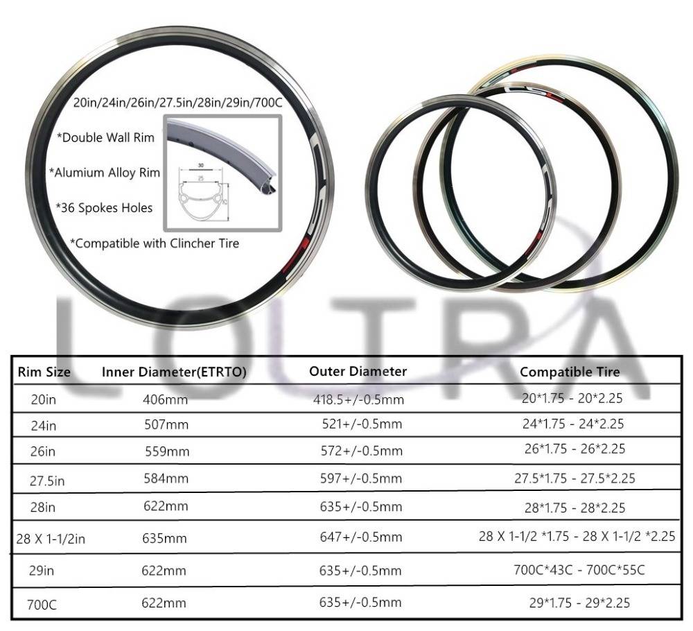 Обод: двухстенный алюминиевый сплав обод внутренний обод с 25 мм x 25 мм глубиной
