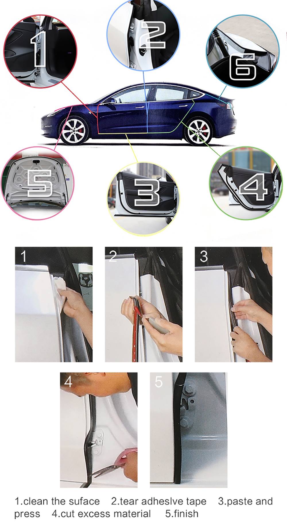 ✅Простота установки:Очистите края двери tesla. Протертый промоутер адгезии на поверхности. Снимите наклейку с Красной защитной подложки уплотнения. Жесткий пресс, чтобы убедиться, что он может быть установлен прочно.