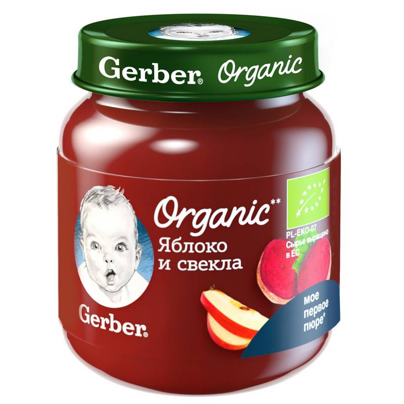 Гербер органические фрукты и овощи органическое пюре яблоко и свекла от 5 месяцев 125 г