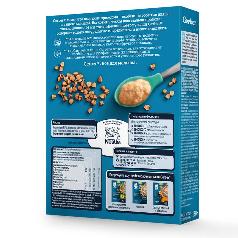 Gerber knows that the introduction of additional products is a special event for you and your child. You want your baby to try only the best. And so are we! That's why Gerber Kasha contains only natural ingredients and nothing superfluous.